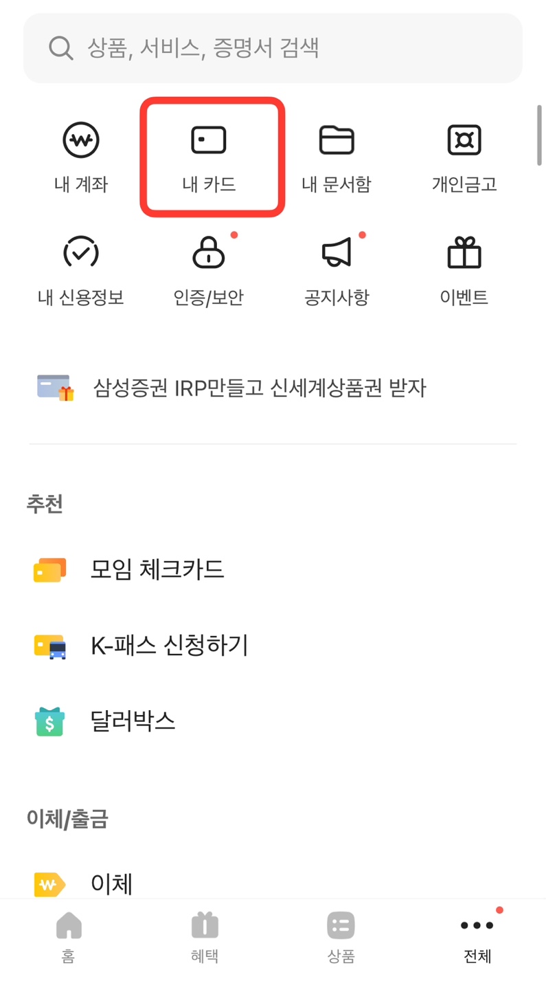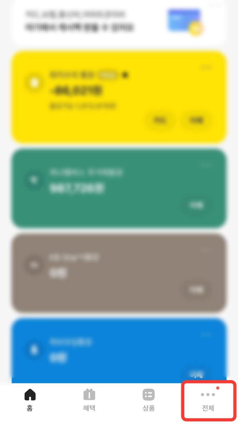 - 카카오뱅크 앱을 열어 메인화면 하단 '전체'를 선택한다.