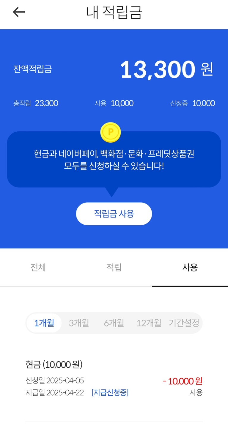 현재 4달 정도 일주일에 많아야 2~3회, 적을 땐 주 1회 정도 이용했던 것 같은데 총 23,300원을 모았더라고요. 한 달에 5,825원 정도 모은 셈입니다.