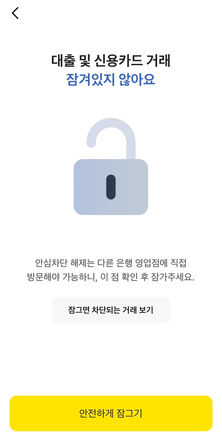 가까운 시일 내에 대출이나 카드 발급이 예정되어 있다면 처리 후에 가입하시길 추천드립니다. 신청은 모바일로 쉽게 할 수 있지만, 해제 시 근처 은행에 방문하여 대면으로만 처리할 수 있기 때문입니다.