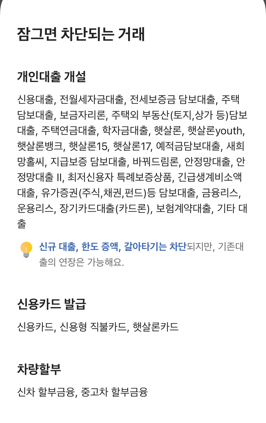 🏦 개인 대출 개설 차단