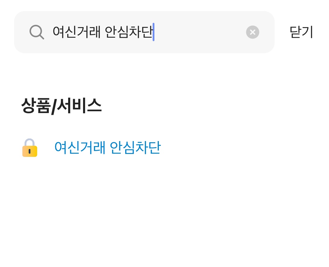 2) 상단 검색창에 '여신거래 안심차단' 입력 후 선택