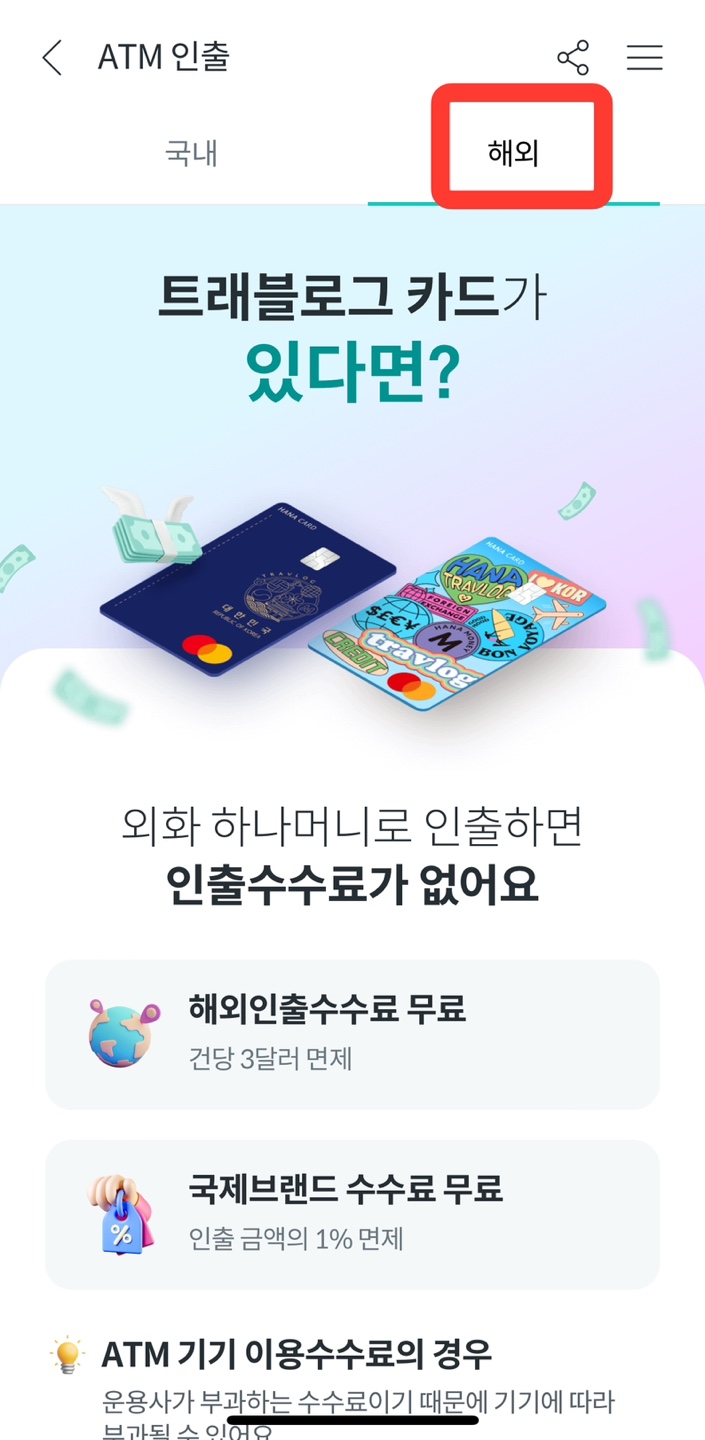 외화 하나머니 설정 시 해외 ATM 수수료 무료