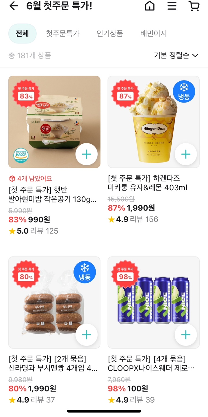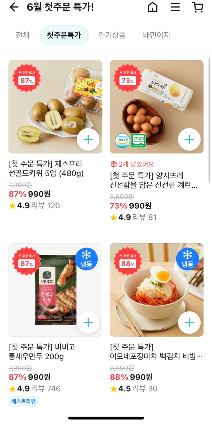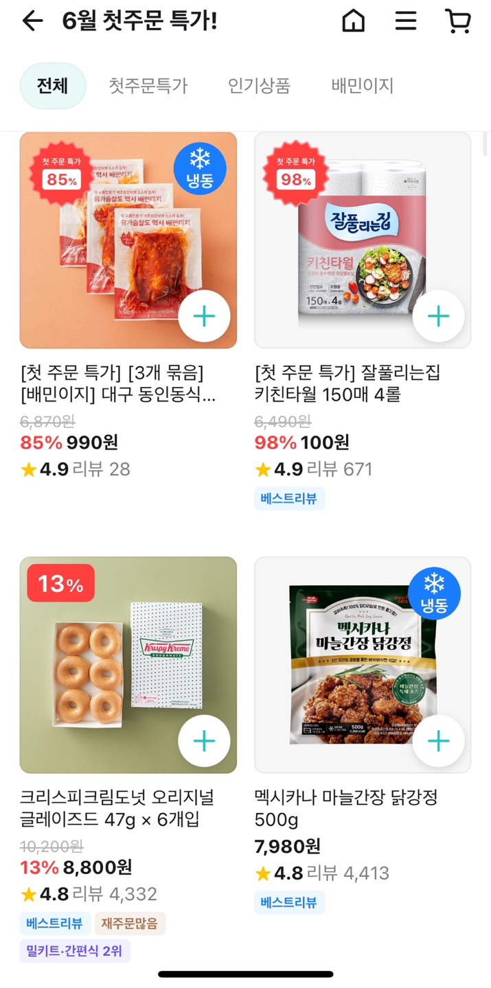 첫 주문 특가 혜택이 빵빵해서 만족스러웠습니다. 다른 지정 조건 없이 광고하는 대로 2만 원 이상 구매 시 1만 원 할인, 저렴한 첫 주문 특가상품을 제공했습니다.