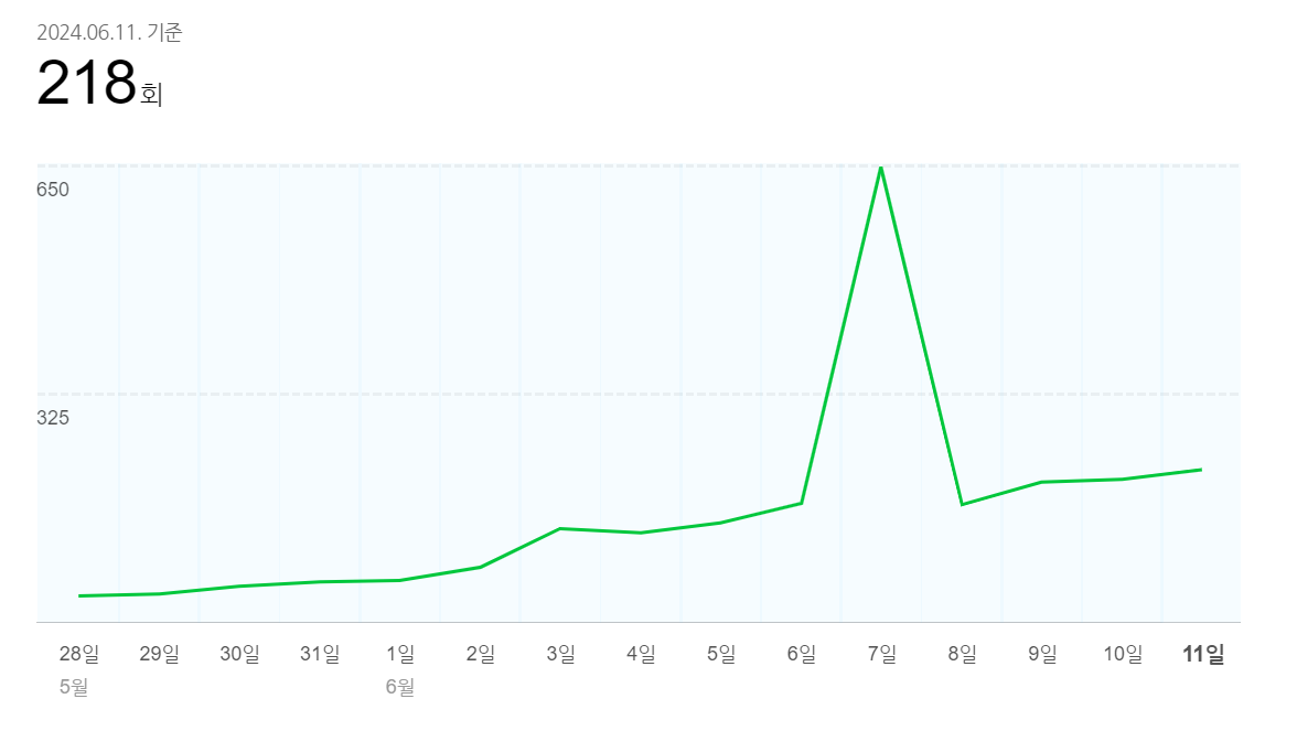 지금은 12월이라 네이버 통계 7월 달 일간 조회수가 나오지 않아 캡처는 못했지만, 이 때는 방문자 유입이 꽤 많았습니다. 최소 일 500명 이상 유입되기 시작했고, 이슈가 터져 많은 날에는 1천 명 이상도 방문하기 시작했습니다. 그래서 체험단 초보 꿀팁으로 올리기 살짝 애매하지만, 추가해 봅니다 :)
