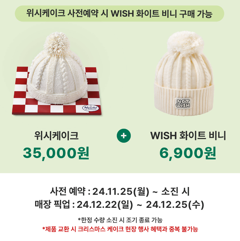 - 특별 이벤트 | '위시케이크' 사전예약 시 위시 화이트 비니 6,900원에 구매 가능