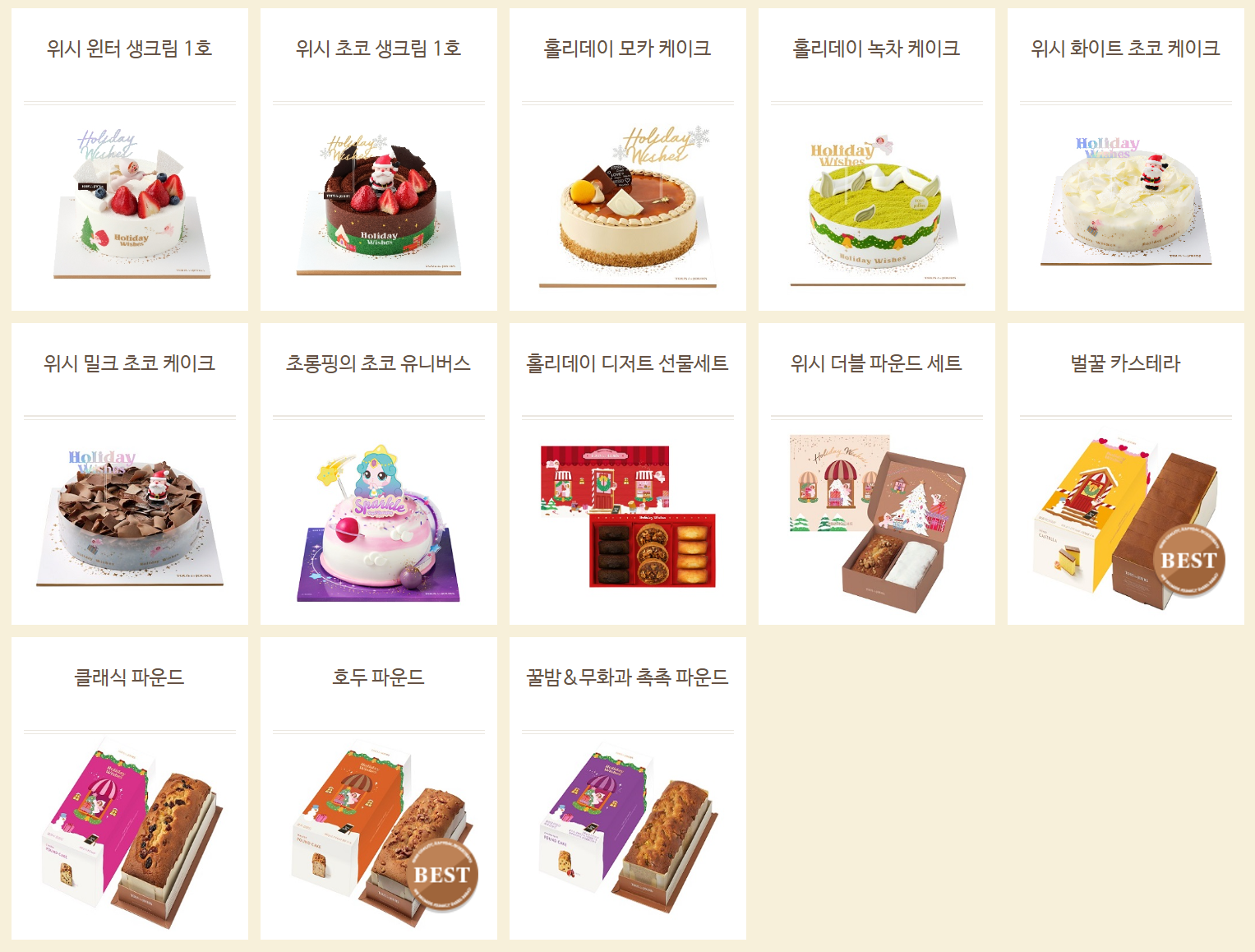 사전 예약 시 위의 제품을 구입할 수 있습니다. 작년 홀리데이엔트리 제품에 이어 '위싱트리 케이크'가 시그니처 제품인 것 같습니다.